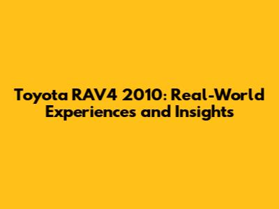 Toyota RAV4 2010: Real-World Experiences And Insights