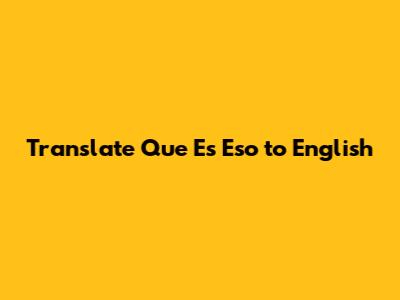 Translate 'Que Es Eso' To English