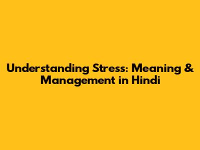 Understanding Stress: Meaning & Management In Hindi