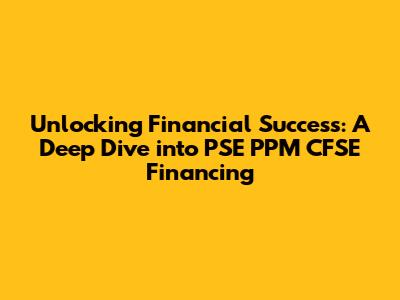 Unlocking Financial Success: A Deep Dive Into PSE PPM CFSE Financing