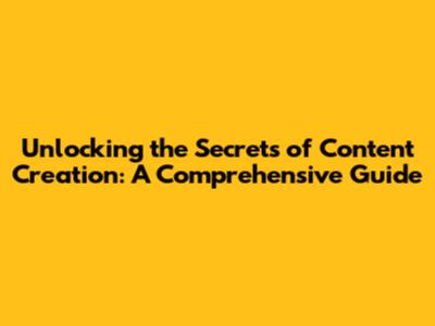 Unlocking The Secrets Of Content Creation: A Comprehensive Guide