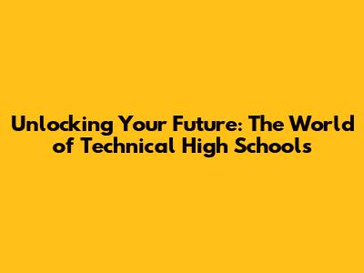Unlocking Your Future: The World Of Technical High Schools