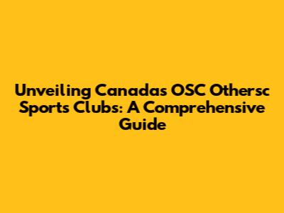 Unveiling Canada's OSC Othersc Sports Clubs: A Comprehensive Guide