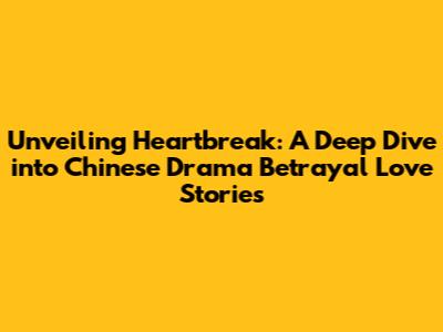 Unveiling Heartbreak: A Deep Dive Into Chinese Drama Betrayal Love Stories