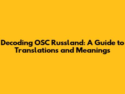 Unveiling OSC Russland: Translations And Insights