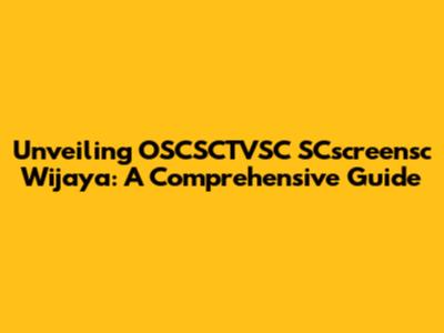 Unveiling OSCSCTVSC SCscreensc Wijaya: A Comprehensive Guide