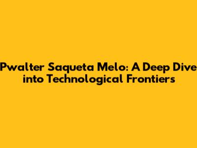 Unveiling Pwalter Saqueta Melo's Tech Innovations