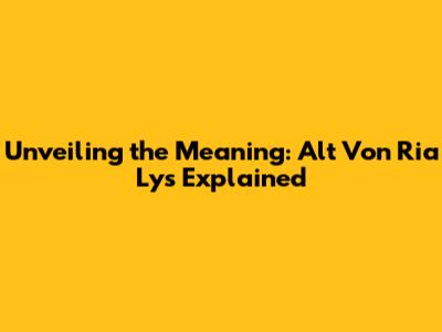 Unveiling The Meaning: Alt Von Ria Lys Explained