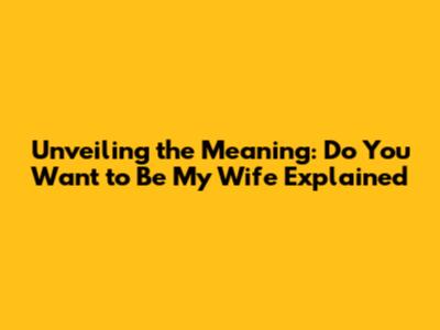 Unveiling The Meaning: Do You Want To Be My Wife Explained