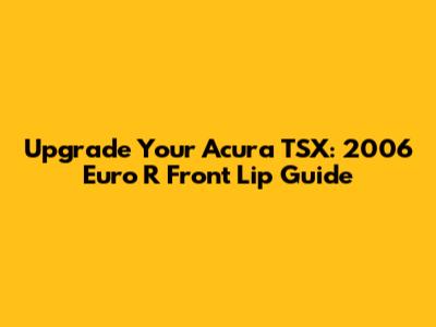 Finding the Perfect 2006 Acura TSX Euro R Front Lip: Where to Look and What to Consider