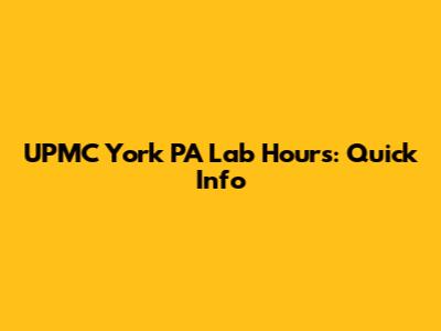 UPMC York PA Lab Hours: Quick Info
