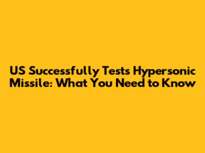 US Successfully Tests Hypersonic Missile: What You Need To Know