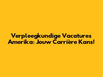 Verpleegkundige Vacatures Amerika: Jouw Carrière Kans!