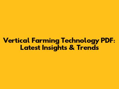 Vertical Farming Technology PDF: Latest Insights & Trends