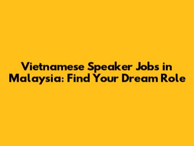 Vietnamese Speaker Jobs In Malaysia: Find Your Dream Role