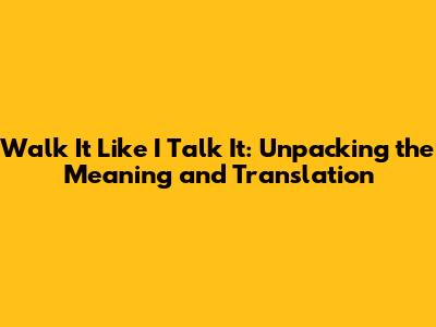 Hey music lovers! Ever found yourself vibing to a catchy tune but scratching your head about what the lyrics really mean? Today, we're diving deep into "Walk It Like I Talk It," a track that's got everyone moving. We'll break down the meaning, explore its cultural impact, and, of course, translate it. Ready to decode this hit? Let's go!