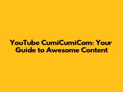 YouTube CumiCumiCom: Your Guide To Awesome Content